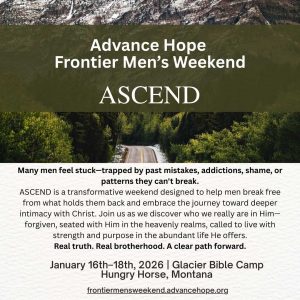 Located at Glacier Bible Camp in Hungry Horse, Montana, the weekend is a Christian, two-plus day retreat complete with meals and amenities provided. We’ll be in the amazing and spacious Glacier Lodge for the duration of the weekend. More details are in the description section below…